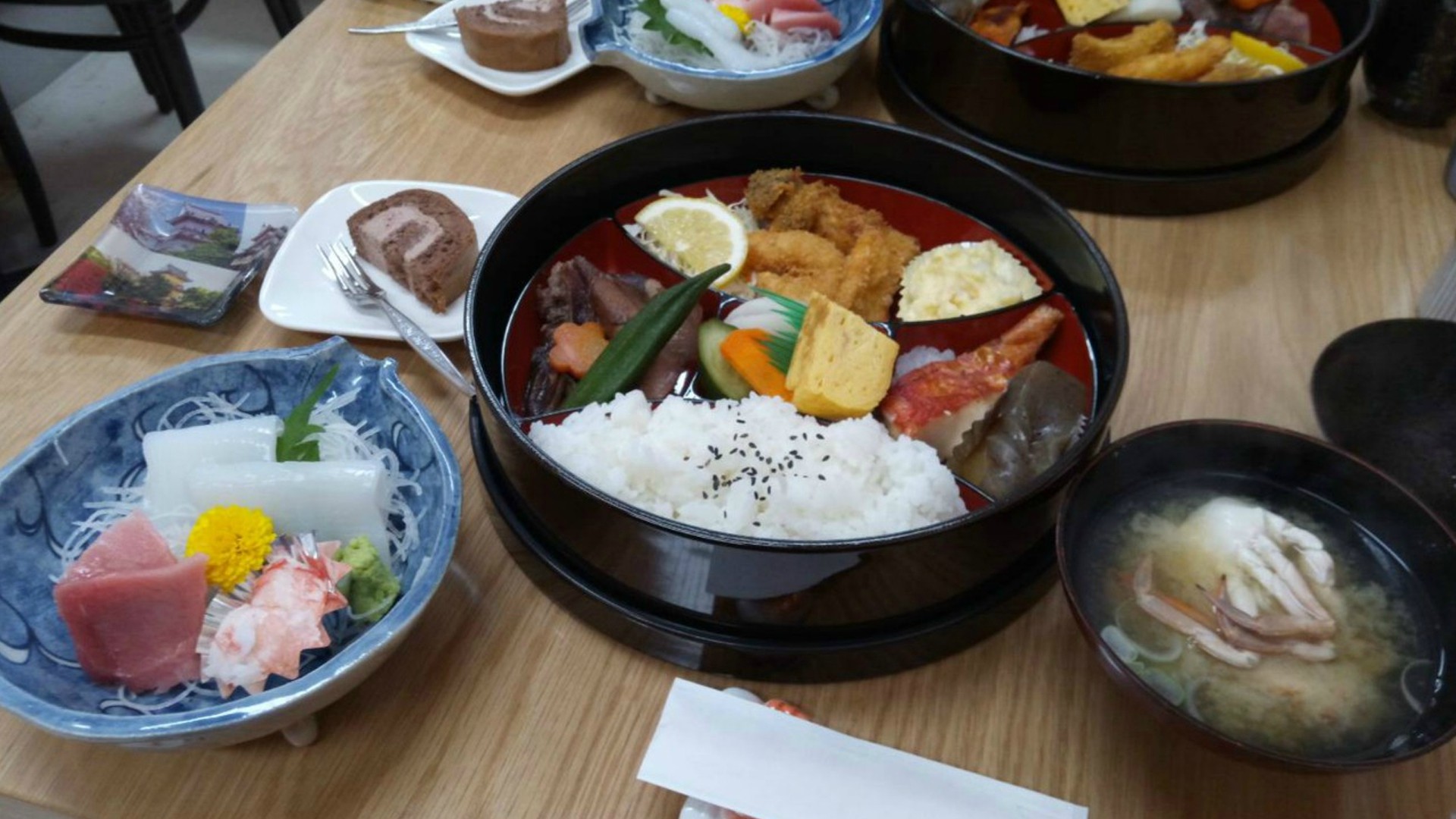 We are serving fish dishes for lunch only in Matsui uoten. 'Sashimi set lunch' 'grilled fish and stewed fish' all menus feature fresh fish in season cooked by professional chefs.